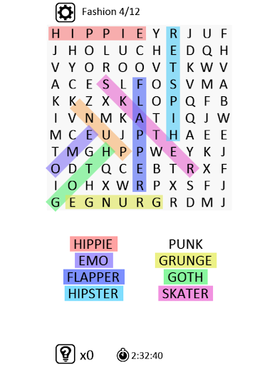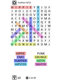 With 10 categories from Sports to Fashion or Nature this is not only a word search for adults. Our game is completely suitable for people of all ages which also makes it the perfect wordsearch game for kids.