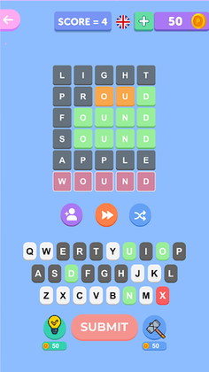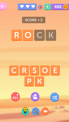 Game of Words wipes away boredom and brings happiness. You can connect different words to train your mind and increase the vocabulary skills by solving Anagram Puzzles.