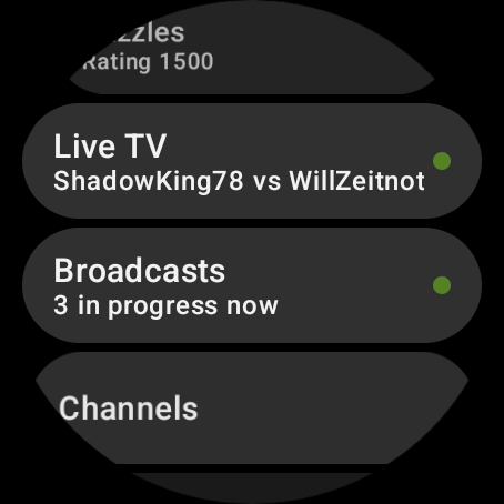 Spectate Lichess TV and channels to catch ongoing games and content. Get insights into various matches and styles of play, all without leaving your wrist.