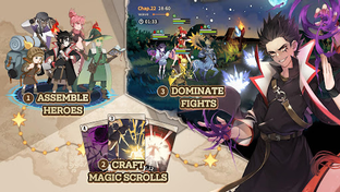 An AFK RPG where players collect and enhance 12 magic scrolls used in auto-battles against warlocks, dragons, and demons, while exploring a vast world and uncovering Zio's true identity.
