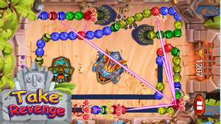 zum is equipped with a ball launcher and must skillfully aim it into balls which matching 3 colours to trigger dazzling explosions of balls.