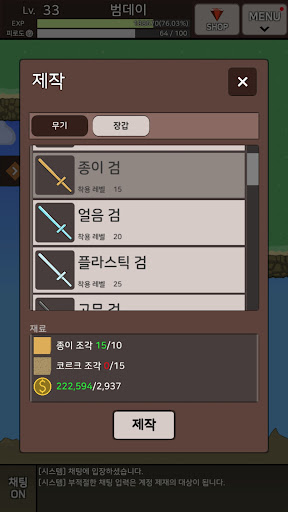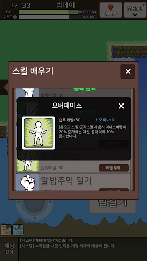 Level up and pay for materials to acquire skills! You can become stronger.