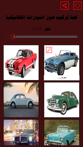 وهناك في لعبة تركيب صور السيارات الكلاسيكية مستويات عدة ومنها مستوى السهل والمتوسط والصعب ويمكنك حلها بالتمراحل .