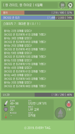 본 게임에서는 광고를 시청하여 게임 플레이 속도를 3배로 향상하거나 자동 전투 기능을 활성화하여 이벤트 선택을 제외한 모든 게임 진행을 자동으로 플레이할 수 있습니다.