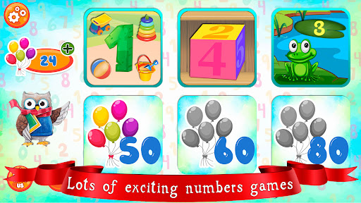 Thanks to the new smart game "Learn Numbers: Kids Games" with colorful and funny pictures, it will be easy, fun, and fast for kids to learn numbers. Logic edukitty memory games contain several different modes. Each of them is fascinating in its own way and will not leave any child indifferent. In the first mode, kids will learn numbers by clicking on each of them, and a rhyme about the number will sound, accompanied by the number of objects that correspond to the number. Next comes the fun of useful logic games for kids! The second mode, "Learning to Count," features children's favorite toys placed on shelves. The task is to listen to the question, for example, "How many cubes are on the shelves?" and then count the cubes and click on the correct number. The free toddler learning games contain plenty of educational tasks: help the toad get to the other side, collect apples in a basket, put the animals in their wagon train, and many other exciting adventures. Kids can even attend a birthday party and count the candles on the cake. For the correct completion of number games tasks, children will receive balloons as a reward, which they can then use to unlock new exciting mini-games for offline play, all for free.