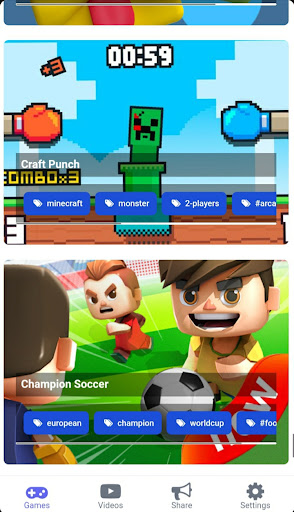 + Play 2 Player Games and Share your favorite games with your friends and win gifts.