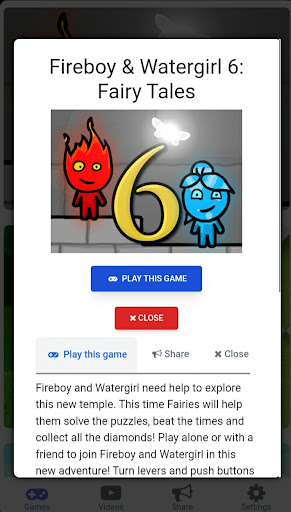 Fireboy and Water Girl need help to explore this new temple. This time the fairies will help them solve puzzles, beat the times and collect all the diamonds! Play alone or with a friend to join Fireboy and Watergirl in this new adventure! Spin the levers and push buttons to complete these 30 new levels of the official Fireboy and Watergirl series.