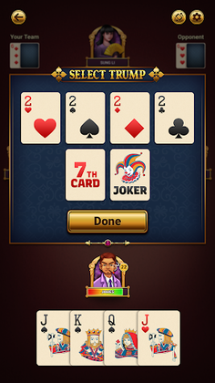 If a player bids 28, they declare "No Trump," meaning there is no trump suit. In this case, the card rankings follow A, K, Q, J, 10, 9, 8, 7 for all suits.