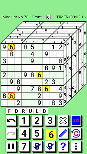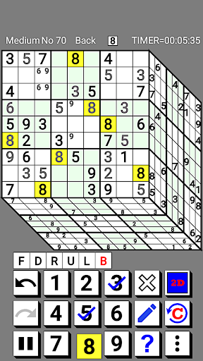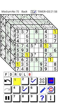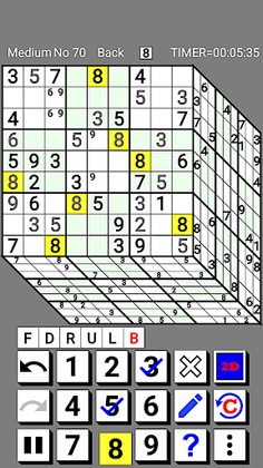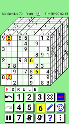 Please read the in-app help (especially "Basic rules of 3D Number Place" and "Advanced rules for 3D Number Place") once before playing.