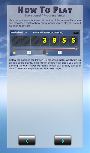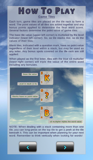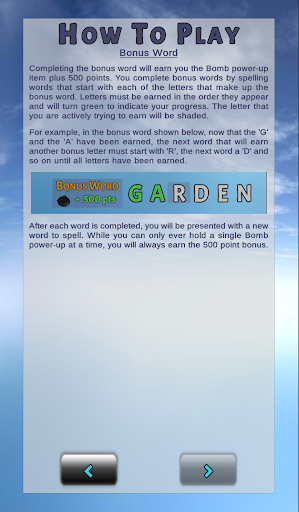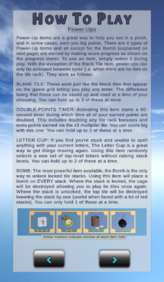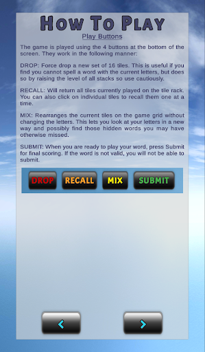 In 4-Ever Words, users try to spell as many words as possible by choosing from a 4x4 grid of letter tiles. All words must be at least 4 letters long. As the game progresses, new tiles will drop on top of the previous tiles creating vertical stacks. As the stacks get higher, the point values of the tiles get higher as well leading to some big scoring opportunities. However, if a stack gets too high, it can become locked which removes its tiles from further play so be careful!