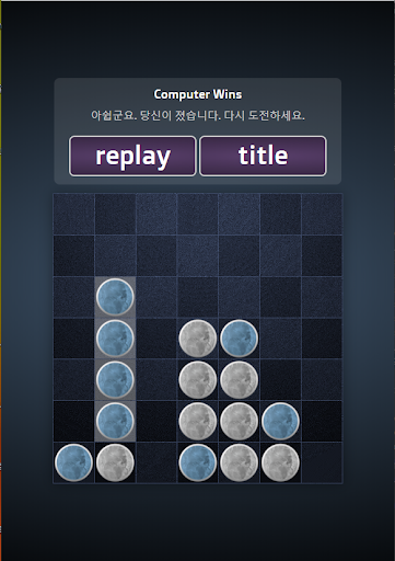 컴퓨터와 턴을 돌려가면서 4개 "달"을 먼저 만드는 자가 승리합니다.