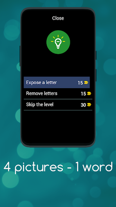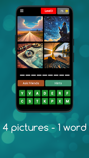 Immerse yourself in an amazing journey through levels where your brain twists will face a serious test. With each level, you'll decipher a puzzle using only four mysterious pictures. Yes, you read it right - just 4 pictures lead to one word!