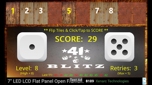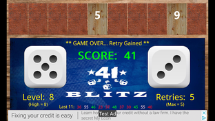 > Rewarded video ads will be offered if retries drop to zero (+3 retries), or after 6 games played since last ad displayed (+1 reroll).