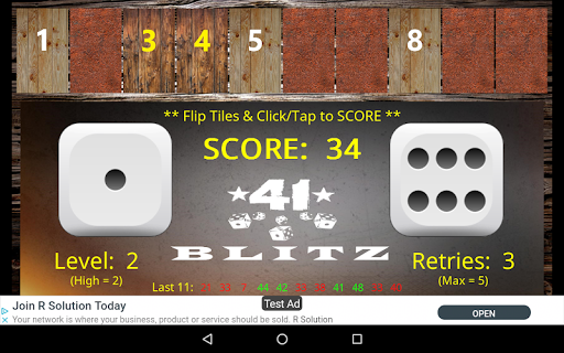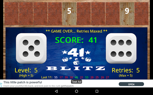 > Game is over if a roll can not be scored using the available numbers (-1 retry… -1 level, if no retries).