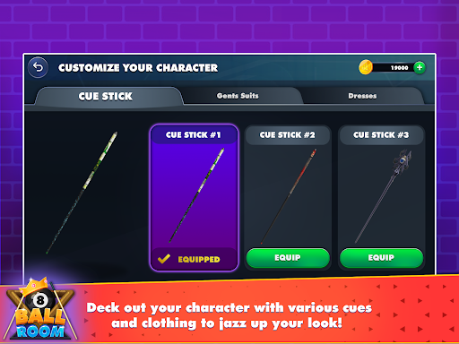 Varieties of customization options, from Table colors to costumes to cue sticks!