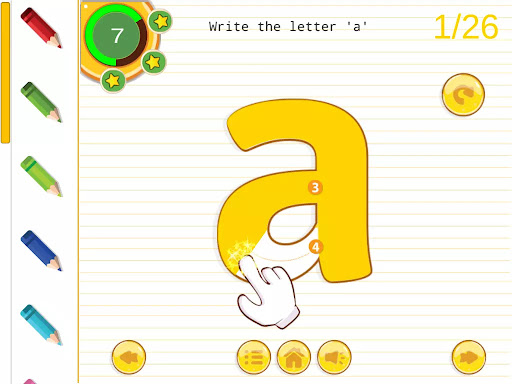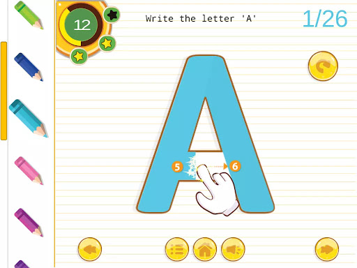 The app includes different levels of difficulty, from basic tracing to more advanced writing exercises, ensuring that children of all ages and skill levels can benefit from using it. Children can also practice writing their names and other basic words to further enhance their writing skills.