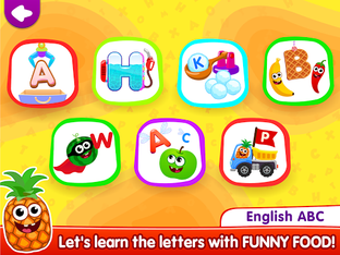 📚While studying funny food abc learning games for kids, your child will quickly and easily become familiar with all the letters of the alphabet A to Z. Our learning apps for kids teach how to write letters and make the first steps in learning to read!