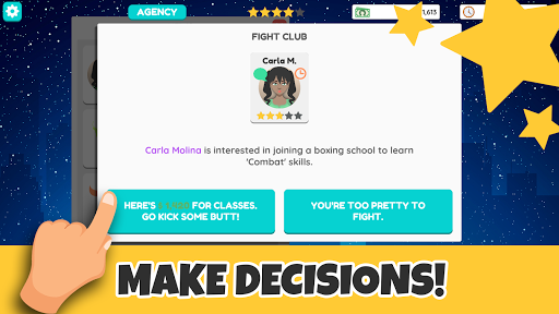 Choose a city to establish your actor agency, customize your character and embark on a journey of fame and success in show business. Start with a small agency with a handful of amateur actors and become a renowned celebrity agent.