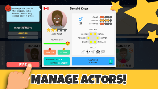 Gain recognition within the film industry, make connections with studio executives and gain the heart of the most talented directors showing them no one knows more about movies than you do. Unlock new skills as the agency grows and find your actors roles that suit their talents -- but be ready to make them happy and keep them out of trouble in hundreds of random events!