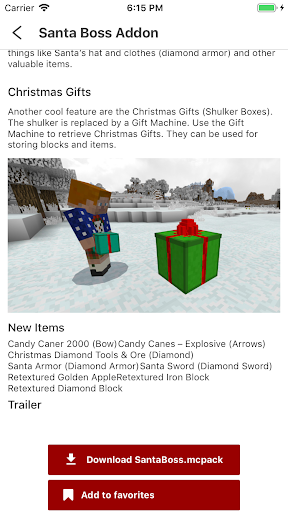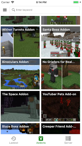 Addons for MCPE - Mods Packs is a toolbox which helps you install MCPE mods, addons, server easily and automatically, without the hard jobs like searching the web, save and transfer files manually.