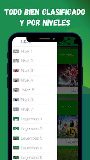 Hay 14 niveles en total donde en cada nivel hay 20 jugadores de fútbol que tienes que adivinar.