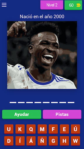 1. Los jugadores deben adivinar el nombre del futbolista seleccionando letras de un conjunto predefinido.