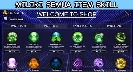 -You can buy many other complete packages such as buying a tank, buying tank bullets, buying additional skill equipment such as tank skills and also turret skills and other skills.