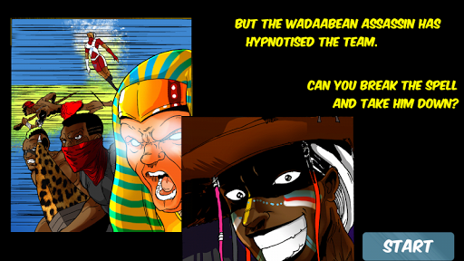 It is a time of crisis in Africa. The continent's mightiest heroes, the Africa's Legends, have been put under a spell and their fate lies in your hands. In this game, you must save the day by breaking the spell and rescuing the team from the clutches of the nefarious villain, Wadabe.