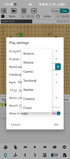 AhQ Go is currently the only Go(also called as Igo, Baduk or Weiqi) AI app that supports switching between different go play styles.