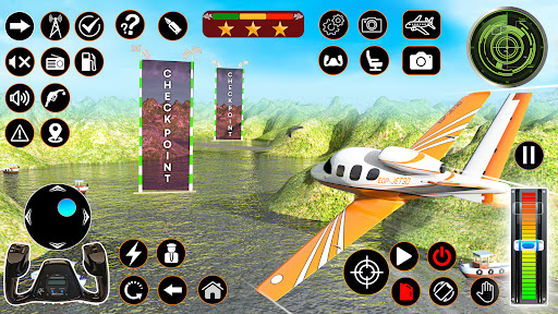 In Airplane Pilot Simulator: Real Flight Sim lot of upgradable modern jets & airplanes from airliners to military aircraft are added to rank it among the flight simulator games. Choose your favorite jet or airplane to be the king of the skies as pro pilot of modern jet fighters games. In this 3D flight simulator game variety of aircraft missions like airplane racing, rescue missions & sky jet fighters distinguish this airplane game as an addictive jet fighter game. In Sky jet fighting missions your duty is to target the enemy warcraft before they violate the safe zone to demolish your homeland airbase. Be careful as rival jets are equipped with modern warfares & precise target detection capability. In airplane racing missions you have to reach the finish point before the rival pilot after collecting all the pick points like one of the best airplane flight simulator games. This airplane flight simulator game is an offline airplane adventure game with simple & smooth controls & most realistic plane physics ever.
