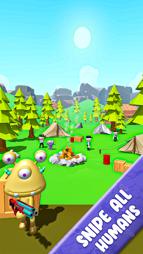 Fun interactive levels. Plenty of meat heads to snipe and test your aim. Choose from a variety of guns and fight those humans. It's an alien invasion we are talking about.