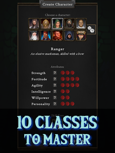 Craft your unique character by selecting from the diverse pool of 10 character classes, each presenting distinctive playstyles and skills. With a flexible character development system, there are no limits to what your character can achieve – any ability can be learned, and any item can be equipped. Experiment with various configurations across 10 skill branches to forge a one-of-a-kind character, perhaps a warrior illusionist or a voodoo ranger.