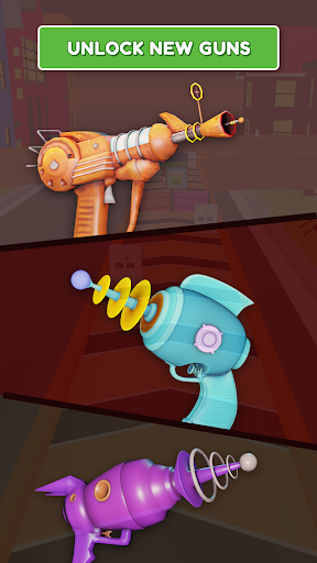 - Start with simple pistols and move on to SMGs, shotguns, assault rifles, and highly destructive guns with ever-more-epic shooting effects.