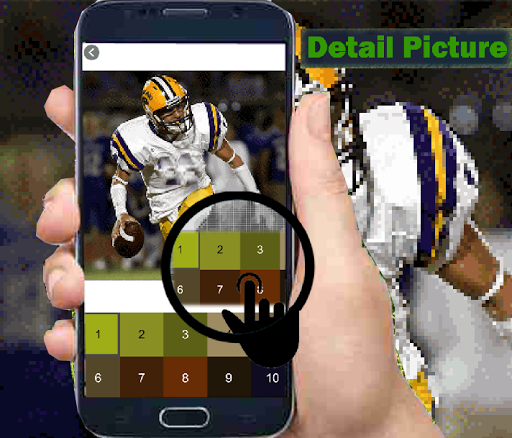 Download and create art pictures coloring numbers, pour colors into each of the boxes, have fun with colors! Complete pixel images by drawing and coloring numbers and share pictures with friends! This pixel coloring game will help increase the power of concentration, patience and the ability to distinguish colors. Come immediately choose American Football Color By Number-Pixel Art and start coloring the numbers!
