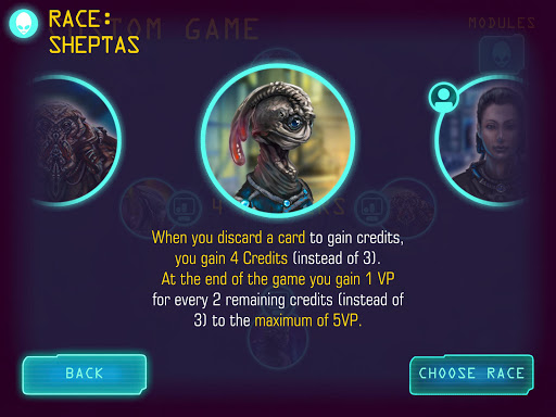 Eight different alien races with unique skills make the game even more exciting and challenging. Your race's extraordinary skill can be employed to take advantage over your opponent or create a combo that advances your strategy and leads you to victory.