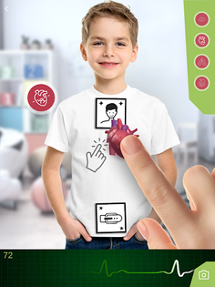 AR mode: by fixing special TAG cards at the height of the neck and waist, you will be able to see the internal organs projected in augmented reality as in a real scan of your body! In this mode you can also interact with the devices, checking some parameters to understand how they work.