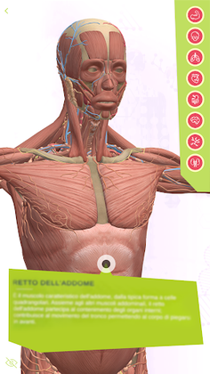 Explore mode: all complete and 3D human body systems can be explored, zoomed and rotated at will. Click on the info points to discover the most important features.