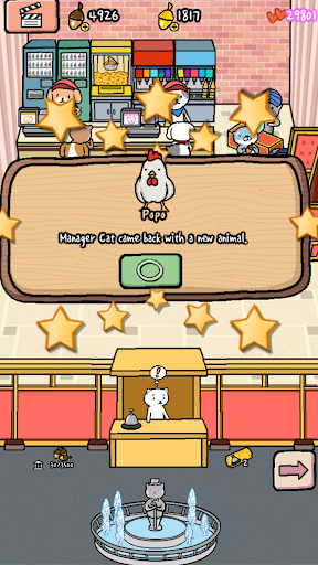 What kinds of facial expressions will animals make when watching a humorous movie, scary movie, and sad movie? If there are any animals who are dozing off, just wake them up. You can make your own masterpiece movie by hiring cute and attractive animal movie stars. Become an owner and a film producer to help busy Manager Cat build the best cinema!