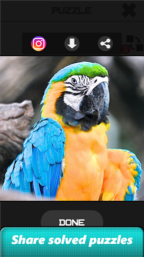 Complete each puzzle to unlock share section for each image, this will allow you to save image in your galery and use it as wallpaper or share it on social media.