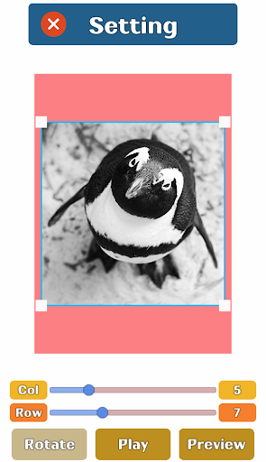 Slide Puzzle has multiple galleries with 90 pictures. You can choose a photo from your own device or take a photo with your phone, you can even crop or rotate your photo .