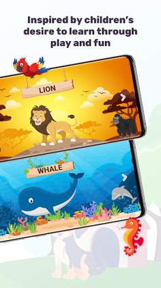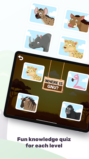 App includes animals from all over the world, which are divided into levels depending on the habitat in which those animals live in. In addition to getting to know the animals, each level also has a fun knowledge quiz, where the child has to guess where the requested animal is through audio-visual cognition. The application is specially made for children aged 2+ and is the perfect choice for modern, fun and smart learning of a child.