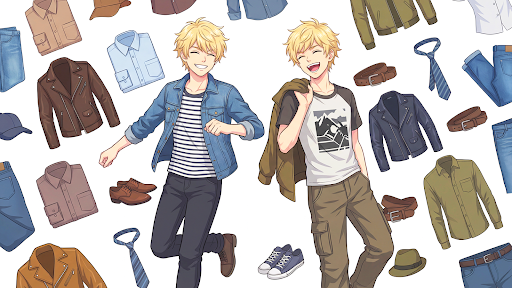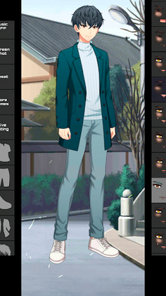 Try an awesome boy character maker for the fans of anime dress up games! Design outfits for a high school boy in his late teens. Create handsome looks by choosing from a large selection of T-shirts, sweaters, jackets, pants, shorts, shoes and hairstyles. Perhaps you would like to create a character that will look just like your favorite k-pop idol? Easy!