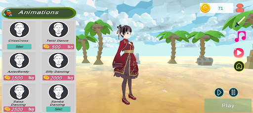 Anime dance game with 27+ 3d anime characters 7+ dance animation and music.