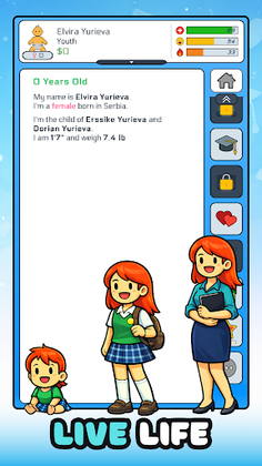 This life simulator game is a game, all events and occurrences are fictional. Any similarities with existing entities are purely coincidental. We've developed this fun game for teens and up so that people may play the game of life in a way that is fun and exciting! The simulater can act as a second life in that players can enjoy a simulation or even a microcosm of life. Since this game is freeplay and will forever be free to play, we've lowered the barrier to entry with this entry to games for teens section! Sink your teeth and stay around for a bit life simulator because it's a very immersive experience!