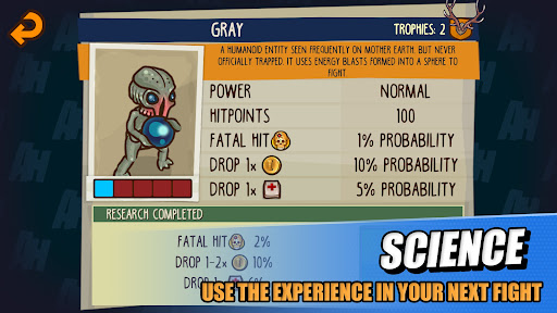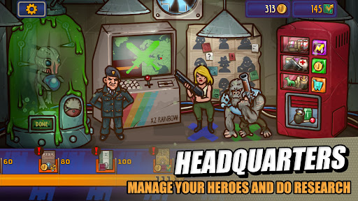 Base of operations are key to our organization. It contains necessary resources to fight this battle against paranormal terror. Keep the battle from the public to avoid worldwide panic and destruction. Manage your team, investigate unknown entities, plan missions and more with the covert technology implemented in our headquarters. Gain progress tracking and check the prestige you've earned. We reward valuable resources for defeating many dastardly enemies like zombies, space invaders, mutated creatures, fighting machines and robots. Test out your skills against epic boss fights, research them and gain access to even more bonuses and resources.
