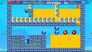 The swimmer can only push the red spheres to their destination so you need to plan ahead how you’re going to get them to where they need to be. If you manage to push them into a corner, your only option will be to press the self-destruct button and start the level all over again.