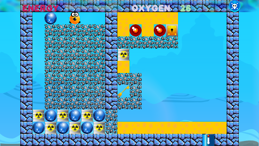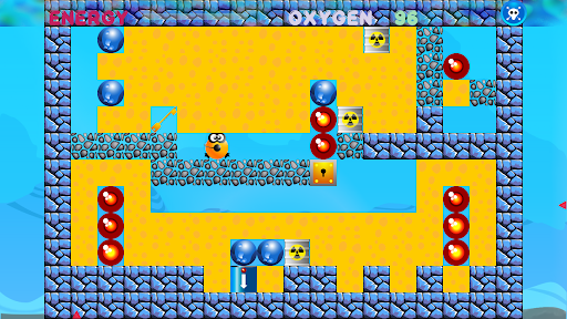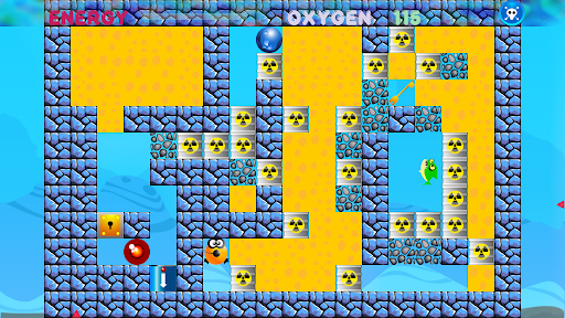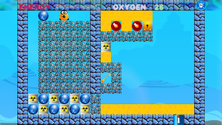 Apart from digging into sand to create a path, you will sometimes also have to use a number of blue stones to free a path or kill a predatory fish that’s out to get you. Handling the rocks is important because if one falls on top of you, well, you know, you’re kind of dead.