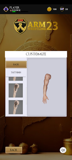 You can customise your arm with tattoos and arm bands from the menu. This is a great way to show off your personal style!