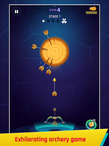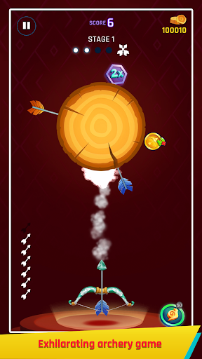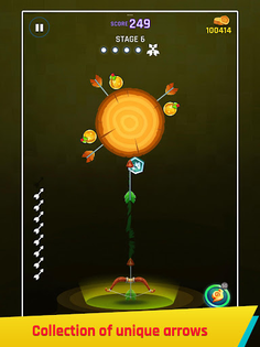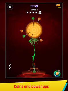 Collect coins to unlock unique arrow types and discover power-ups like slow motion, extra chances, and score multipliers to enhance your score. Challenge yourself by defeating boss levels and earn mystery boxes filled with additional coins, extra lives, or slow-motion power-ups to aid you on your journey.