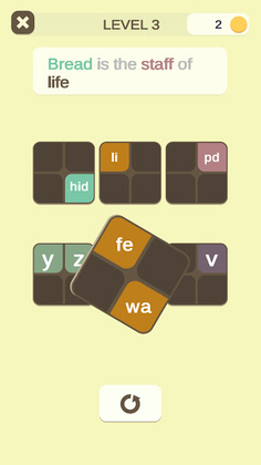 Complete levels, earn rewards and use them to crack word code